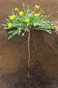 栄養を蓄えるための貯蔵庫 ゴボウのように、タンポポの根には栄養がたっぷり蓄えられています。この栄養によって、花が枯れても新しい芽を次々と出すことができるのです。